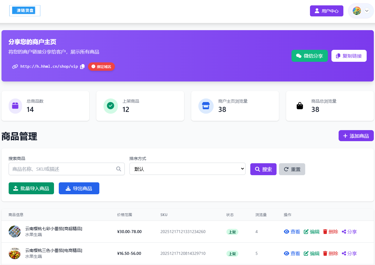 针对上述痛点,渼链农业发展(红河)有限公司推出了渼链电商货盘系统。该系统将静态文件转化为动态的、可管理的智能链接,从根本上重塑货盘管理模式。